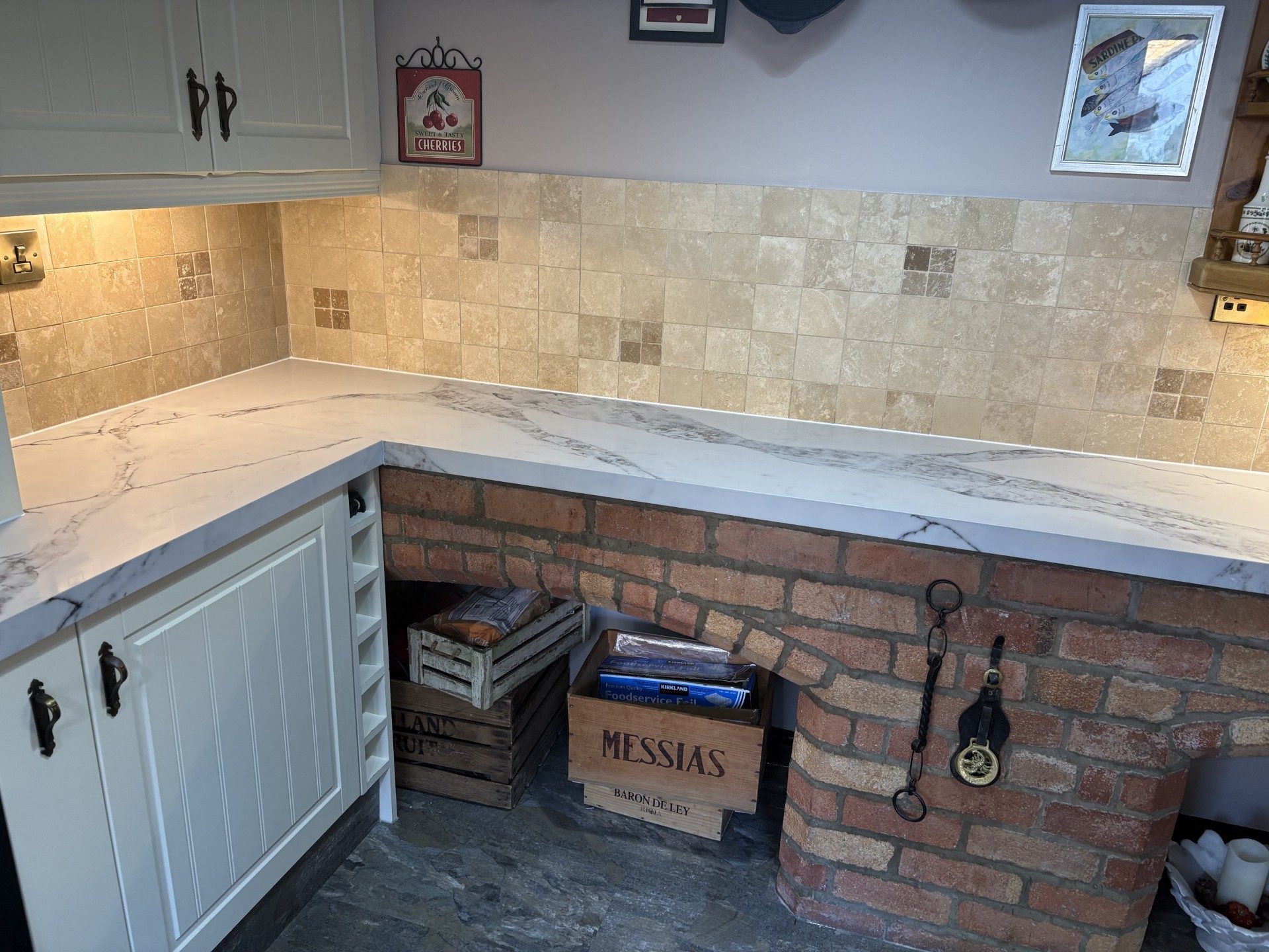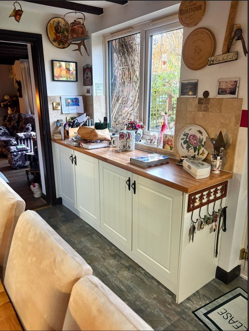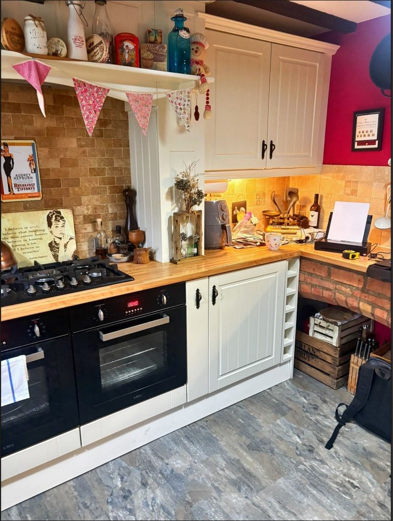 Helen wanted to freshen up her traditional, well-loved kitchen while keeping its warm, homely character. By replacing the original timber worktops with new Calacatta Retro quartz overlays, we were able to brighten the whole room and introduce a more refined, marble-look finish. The space now feels lighter and more up to date, yet still very much in keeping with the rustic brickwork and tiled splashbacks.